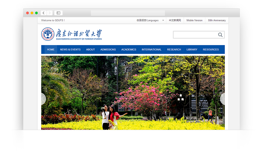 广东外语外贸大学英文网为全校同学提供了英文新闻的阅读平台,也是国内外交流单位、外教、留学生了解广外的重要窗口。