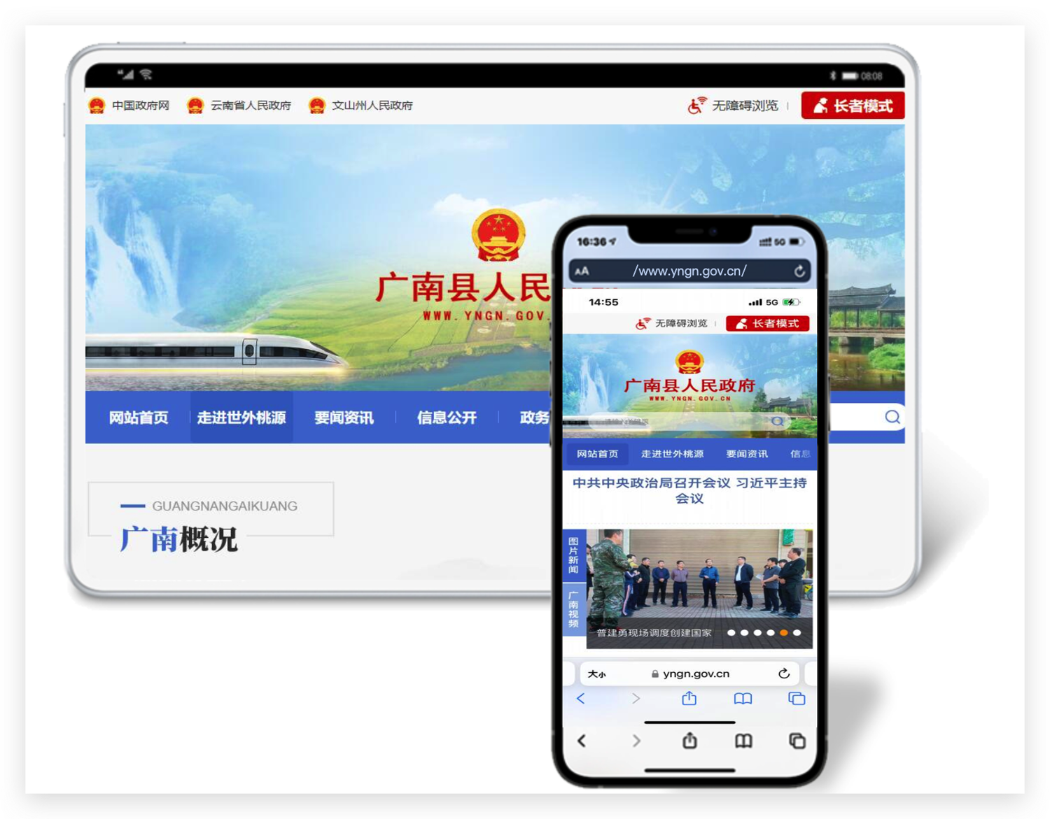 广南县人民政府高度重视政府门户网站建设管理运维各项工作,以《政府网站发展指引》、《数据安全法》、等级保护2.0等政策要求为指引,持续推进县政府网站集约化、全媒体信息管理和适老化改造等方面的建设。广南县政府门户网站历经15年持续升级,采用动易WebFuture平台实现全媒体统一管理,构建多重安全防御体系,打造便民利民的政务公开服务平台。在加强政务公开、优化政务服务、深化信息内容建设及保障网站安全等方面对政府门户网站进行了多次优化改版和升级,推动政府网站创新发展,持续提升政府网上履职能力和服务水平。