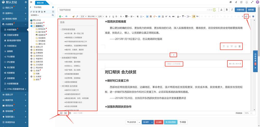 基于标准模式,增加了内容分页和内容大纲(目录)功能,主要用于文章内容编辑。