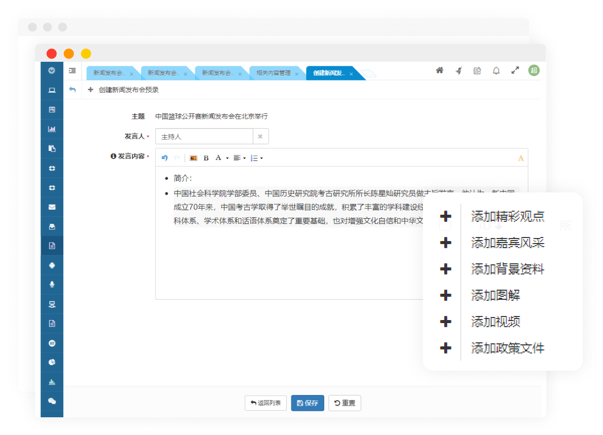 新闻发布会系统专为网站群平台设计,旨在提供一个互动交流的新闻发布会栏目。