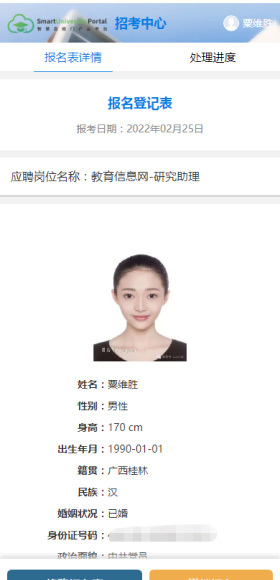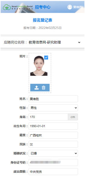 此外,如果考生增参加过以往的招考项目,系统会自动复用之前的报名表信息,考生只需更新过期信息即可,极大减少了填写工作的重复性。