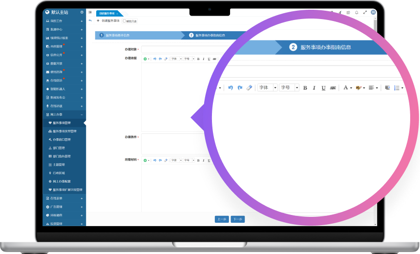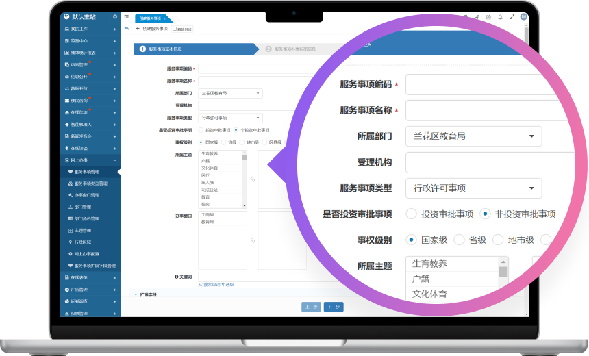 网上办事系统主要用于在网站群平台展示并处理各类行政审批服务事项,为用户提供一个便捷的在线服务平台。