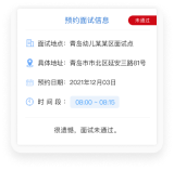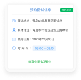 ● 对于线下现场面试模式,在预约面试日期前三天、前一天、预约 面试当天早上8点、预约面试时间段的前一个小时,分别提醒考生 要到来到现场进行面试。