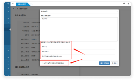 支持由面试官组长对面试结果“不合格”的考生进行复核。