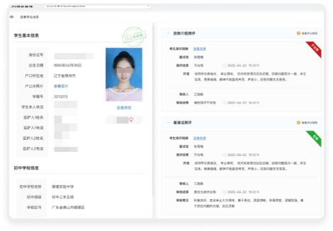 ——分成考生信息区、流程信息区和测评项目及结果区。信息全面,井井有条。