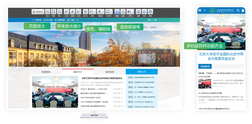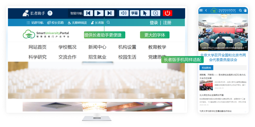 针对高校门户网站群(包括学校主站、各学院子站及各部门子站)的建设需求,配套精心整理的默认数据和量身定制的前台模板,并与程序一并打包为高校行业版本的产品安装包(SmartUniversityPortal),客户部署后即可实现“开箱即用”,可高效完成高校网站群建设任务。
