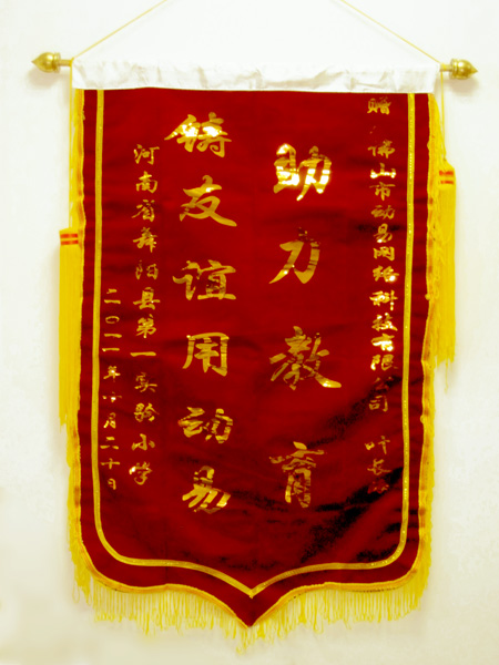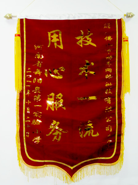 近日,河南省漯河市舞阳县第一实验小学将一封感谢信以及两面表扬锦旗送到了动易公司,崭新的锦旗上分别书着“用心服务 技术一流”和“铸友谊 用动易 助力教育”,表达了对动易客服人员叶长海、技术支持工程师李宁宁在舞阳县第一实验小学校园网建设过程中的优质服务的感谢之情,同时也对动易产品做出了很高的评价。