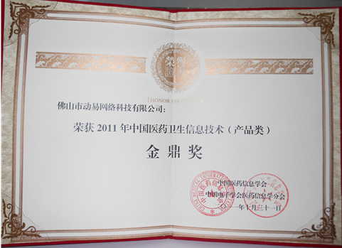 2011年10月31~11月3日,“第五届中国国际电子病历• 医药物联网•健康云计算博览会”在深圳隆重举办,大会评选出了一年一度的中国医药卫生信息“金鼎奖”,动易软件荣获“2011年中国医药卫生信息化首选品牌”奖和“2011年中国医药卫生信息技术(产品类)金鼎奖”。