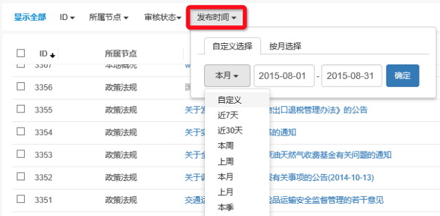全新架构的 SiteAzure 能更好的满足这些需求。它拥有目前同类产品中最多种条件混合筛选,例如:日期型数据就可以直接选择本月、本周、本季度等,也可以完全自定义时间进行筛选。还支持多个属性还可以同时进行筛选,方便客户快速的定位想要的数据,并且使用了更加方便的界面。