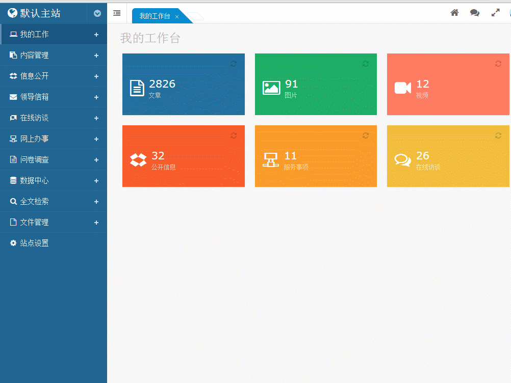 在全新架构的动易SiteAzure中,我们决定抛弃旧交互界面,打磨出新的交互逻辑和视觉界面。新SiteAzure的管理界面将更加符合政府用户实际交互需求和视觉感官需求。