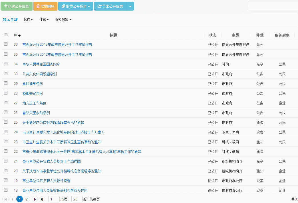 ● 列表页可以按多种方式进行刷选,包括可以按ID、所属节点、审核状态、发布时间(自定义选择或按月选择)。