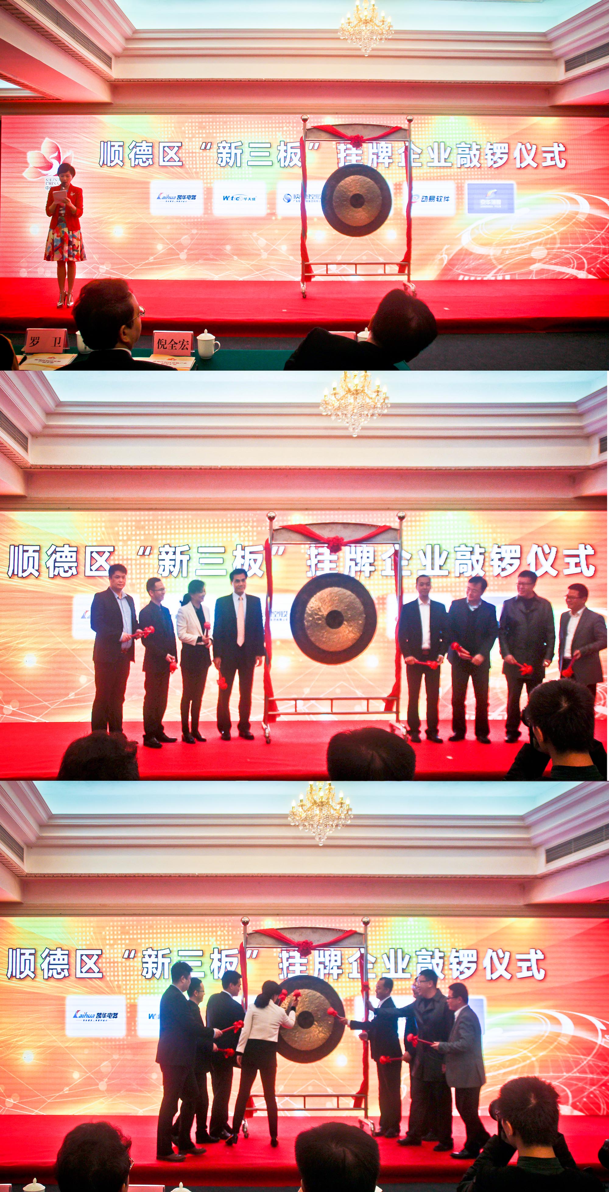 在顺德区召开的科技金融产业融合发展大会上,顺德大手笔拿出1200万元奖励14家上市企业,动易软件作为顺德软件新三板第一股与其他5家新增新三板企业共同敲响了上市钟声。