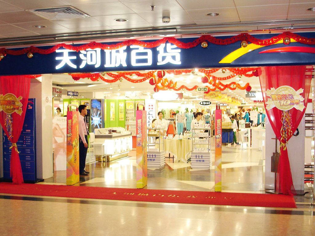 广东天河城百货有限公司(原天贸南大)是广东天河城(集团)股份有限公司下属子公司,是一家融合现代化商业气息、极富社会文化特色的大型综合百货零售企业。位于广州最具规模的现代化购物中心——天河城的二、三、五、七楼,总营业面积超过30000平方米,经营国内外各类服饰、皮具、金饰、家电、食品等名优新特商品超过8万余种。