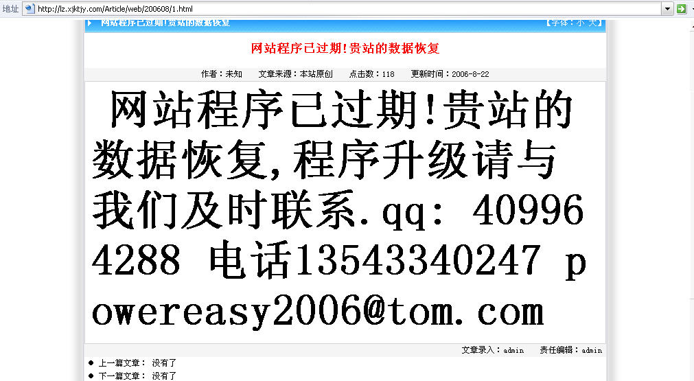 近日,动易公司接到用户反应和举报,其使用的动易普及版网站被黑客攻击,黑客不仅在网站上标注“因为动易免费版严禁用于商业服务,所以停止了此网站……”字样,还破坏了网站数据,且留有QQ、电话、邮箱等联系方式要求站长与之联系进行程序上的升级,并注明“直销风暴”。(见附图)