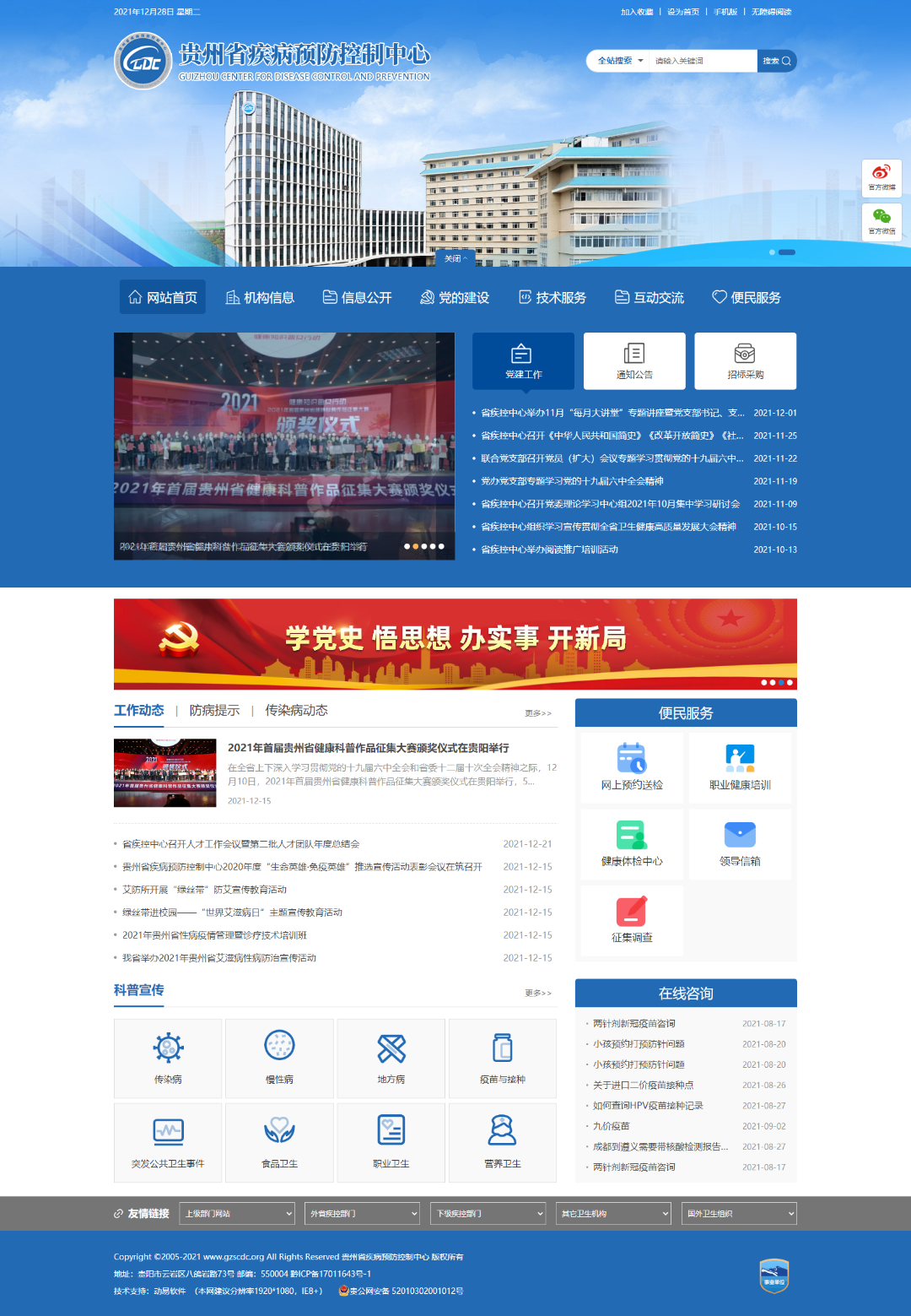 近期,动易公司顺利完成贵州省疾病防预控制中心门户网站升级项目!为贵州省疫情防控工作提供技术支撑!