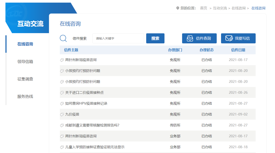 此次升级,更是完善了在线咨询服务,可及时与群众进行互动反馈,在疫情时期,贵州省疾病防预控制中心通过回复留言、接收信件、接听电话等方式,精准解答网友关心的话题,为群众提供一个全方位的服务平台,切实提升中心网站的满意度。