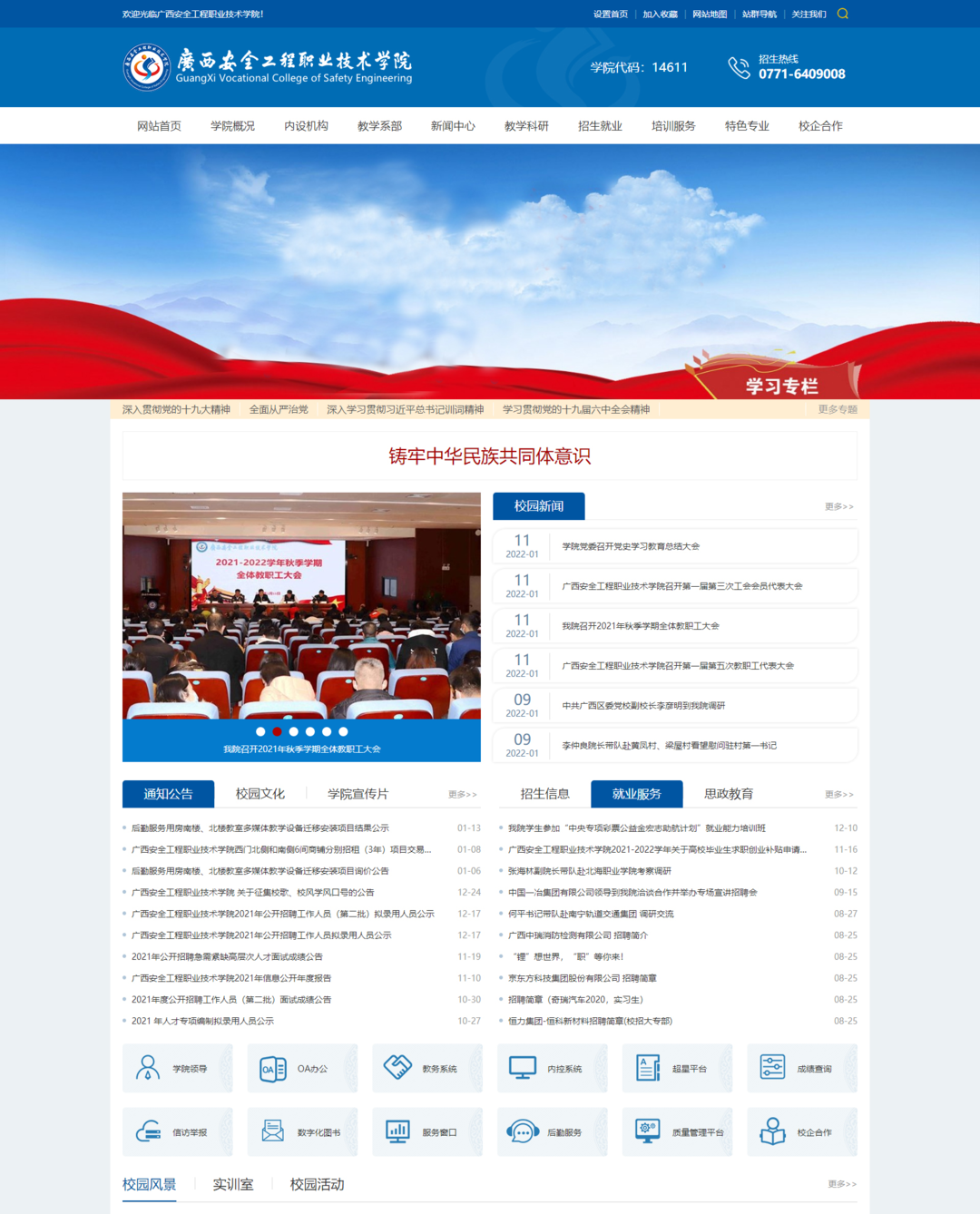 响应《教育部关于进一步推进职业教育信息化发展的指导意见 》,建成集行政、教学、科研、学生和后勤管理于一体的信息服务平台,支持学校信息发布、项目管理、招生管理 、人力资源信息管理、就业信息跟踪分析等,推动职业院校加强管理信息化应用。