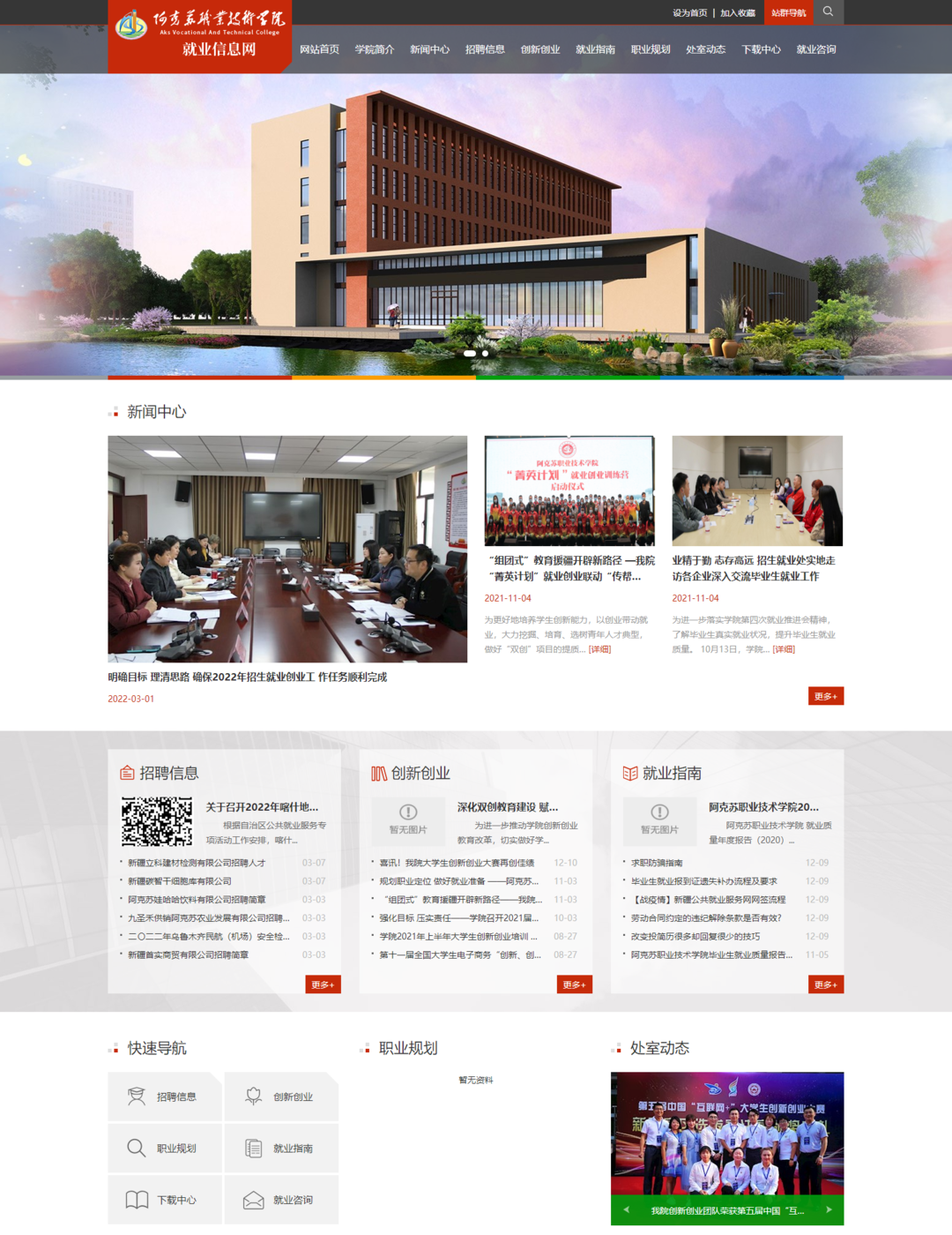 就业信息网作为站群二级站点,通过整理、归纳和分析,提供就业动态,对学生的求职择业及自我塑造和发展起到帮助和导向作用,并提供求职招聘渠道。