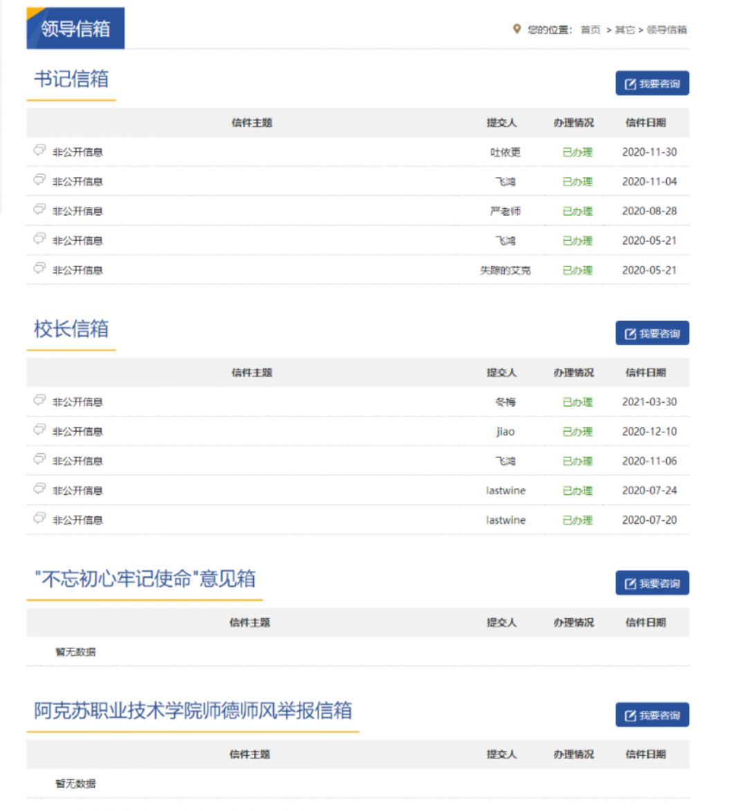 领导信箱进一步增进学校领导与师生员工、校友及社会各界人士的互动交流,倾听合理诉求,吸收合理化建议。