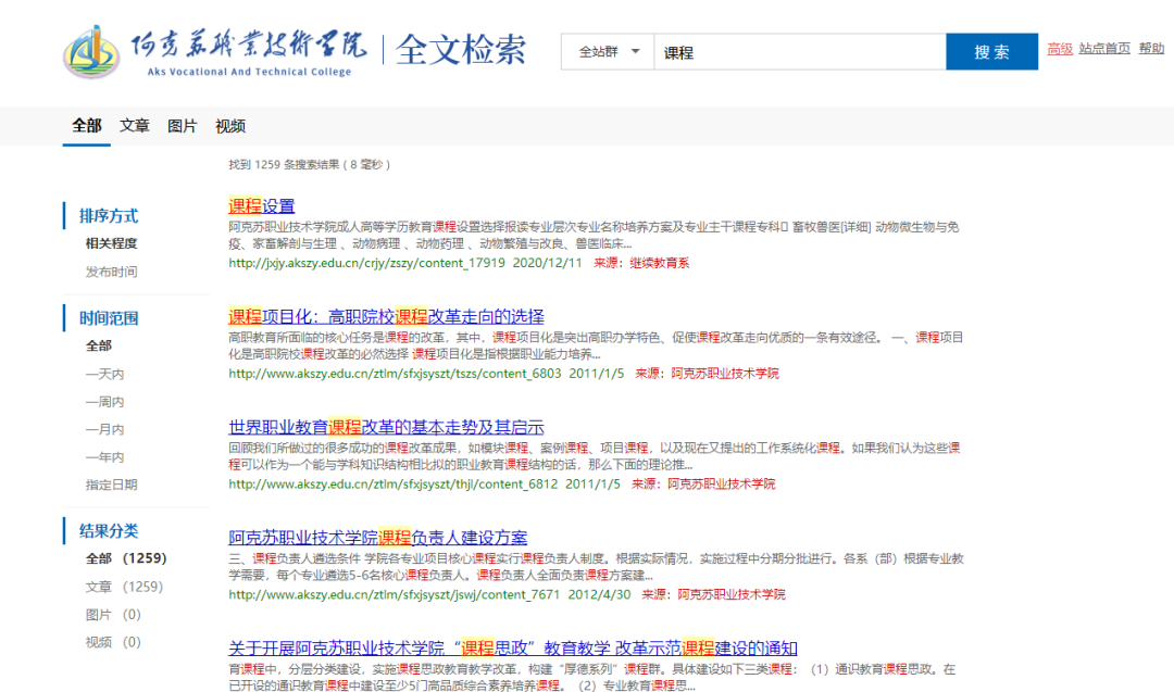 智能的全文检索技术,可支持检索网站群全站数据,也支持跨站点或指定站点的检索。可在最短时间内,完整、准确、及时地掌握网站所有信息,可为网站解决海量数据下的站内信息和文档检索应用,向师生、社会人士提供高效、准确、个性化的站内资讯搜索体验,大大提升用户在网站的检索和查询体验。清晰的目录结构,也为用户提供便捷、舒适的信息查询环境。