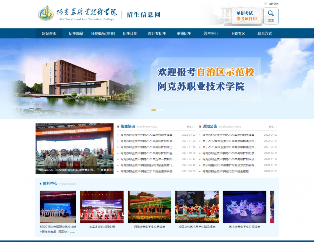 阿克苏职业技术学院是2002年3月经自治区人民政府批准成立,隶属阿克苏地区行署管理的一所全日制普通综合高等职业院校,是教育部等国家六部委指定的西北五省首批护理专业技能型紧缺人才示范性培养培训基地,是南疆唯一一所自治区示范性高等职业院校。