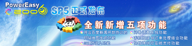 追求产品的尽善尽美是我们的共同愿望,打造超一流的网站管理系统是我们的共同目标。经过动易开发人员认真的收集、整理、修复和测试,SP5已经修复了SP4以来目前已知的40多项大、小BUG,有多处更新和改动并经过多方面运行测试,系统更趋稳定;集成了SP4后的3次安全更新和SQL防注入插件,系统更加安全;新增符合百度互联网新闻开放协议的网站地图生成功能、SQL防注入功能、问卷调查系统功能、手机短信与订单处理结合功能、快钱神州行在线支付功能等新功能……
