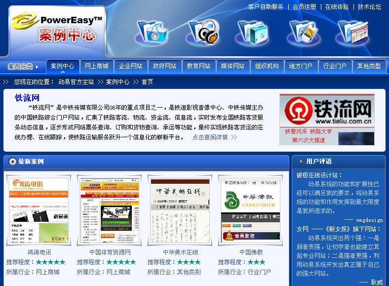 动易案例中心频道网址:http://www.powereasy.net/case/,精彩案例敬请关注!同时希望有更好的案例能加入到案例中心来,若您有好的案例请直接与动易市场部联系。
