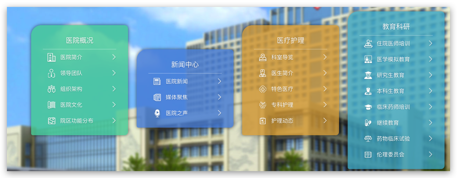 社会入口主要展示医院概况、科研教学、动态新闻等,让公众快速了解医院品牌与实力。