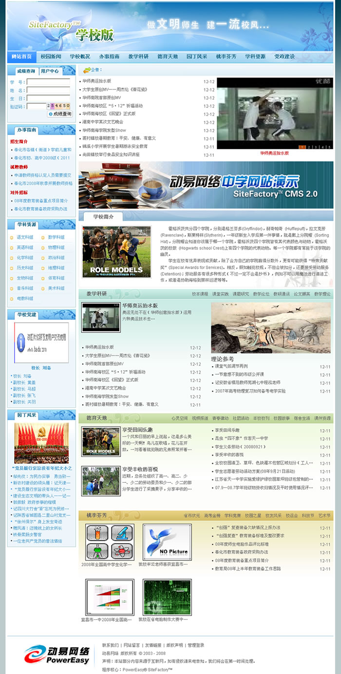 SiteFactory 学校版产品介绍:http://www.powereasy.net/Products/SiteFactory/Education/