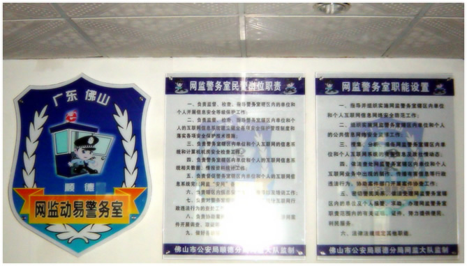 作为顺德网监的下属分管单位,动易警务室拥有一系列网络监管职能,包括组织实施公共信息网络安全监察工作,搜集、分析、报告有害信息及敌情动态,依法查处制作、传播有害信息、打击网络侵权等行政违法行为,协助案件部门开展案件协查工作等等;同时,动易警务室也肩负着对辖区内单位及个人进行网络信息的相关督察及对涉网案进行协助调查及取证等等岗位职责。