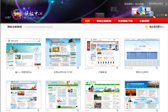 全新上线的动易模板中心主要用于展示动易设计团队在为客户定制各类网站模板方面的优秀案例,所有用于展示的模板案例均为基于动易系列软件产品而进行的专门设计,分别分为政府、教育、媒体、企业、电子商务等不同行业类型,充分展示了动易设计团队在用户体验、网页设计、前端输出、标签应用与制作等网页设计领域的研究与实力。