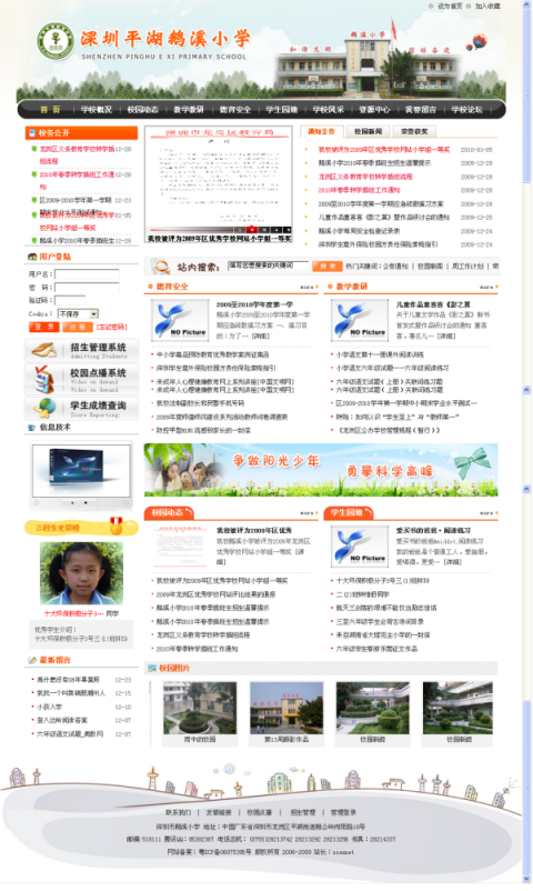 喜讯:近日,由我司负责承建改版的深圳平湖鹅溪小学网站在深圳市龙岗区教育局举办的2009年优秀学校网站评比活动中从全区一百多个中小学中脱颖而出,一举荣获一等奖殊荣!动易软件谨在此致以热烈的祝贺!