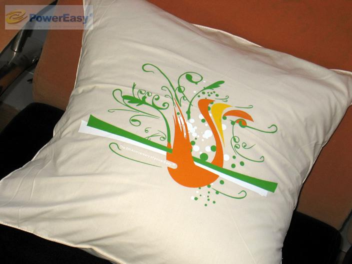 既然是我们五周年庆典的纪念品,那就要求这个纪念品上必须有动易的相关logo或者图案,而这个logo或者图案设计的好坏,也将直接影响到纪念品的整体效果。考虑到动易五周年的纪念logo有点太过简单和单调,印制在T恤和抱枕上可能视觉效果不够好,特意请设计部的资深设计师对logo进行加工设计。同时制作厂家本身也有一定的设计实力,答应可以帮我们进行免费设计。为了能够挑选到更好的设计,我们同时也让厂家帮忙进行设计。经过多次的修改,最终还是采用了动易设计师的设计,也就是下面大家所看到成品图上的图案,怎么样,这个设计还漂亮吧:)