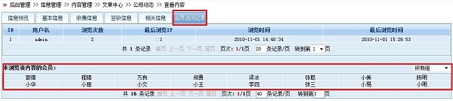 而现在,动易SiteFactory® 3.6 便可以很好的解决这一问题了,SiteFactory® 3.6 新增了会员访问文章纪录功能,当有新员工在内网上注册成为会员后,系统会自动识别出所有会员,而不用重新手动选择,并且员工看过文章即有纪录,不用员工去手动签收。