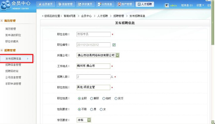 1、发布招聘信息