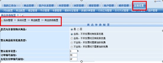 首先进入系统后台“系统设置”界面,在“商店配置”功能栏中点击“商店参数配置”。