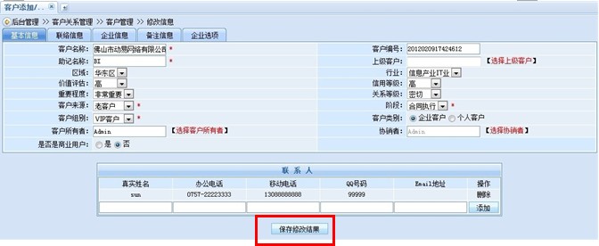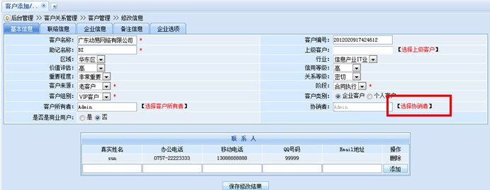 这样,整个协销的设置工作就成功完成了,2位销售人员可以共同查看、修改此客户的相关资料,齐心合力完成项目的销售以及跟进工作。协销功能的介绍就为大家介绍到这里,赶快来体验一下吧!