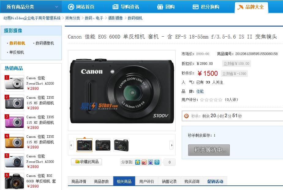 接下来看看动易BizIdea最新的“秒杀”功能。