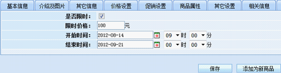 首先,进入动易BizIdea后台, 选择某件“限时抢购”的商品,开启限时功能并设置属性,如下图:
