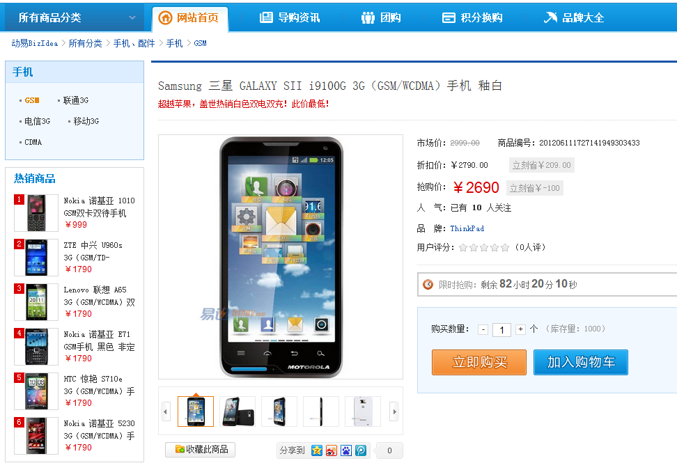 接下来看看动易BizIdea “商品限时抢购”功能。