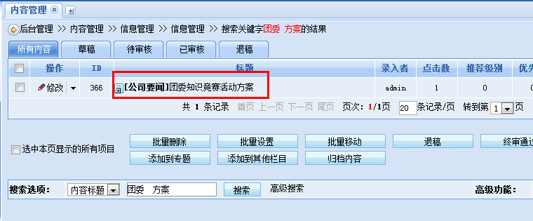 后台搜索支持空格分词搜索—动易5.0版新特性