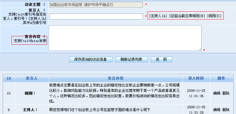同时,访谈主持人、书记员或访谈工作人员可以对网友的提问进行修改、删除等多种管理。