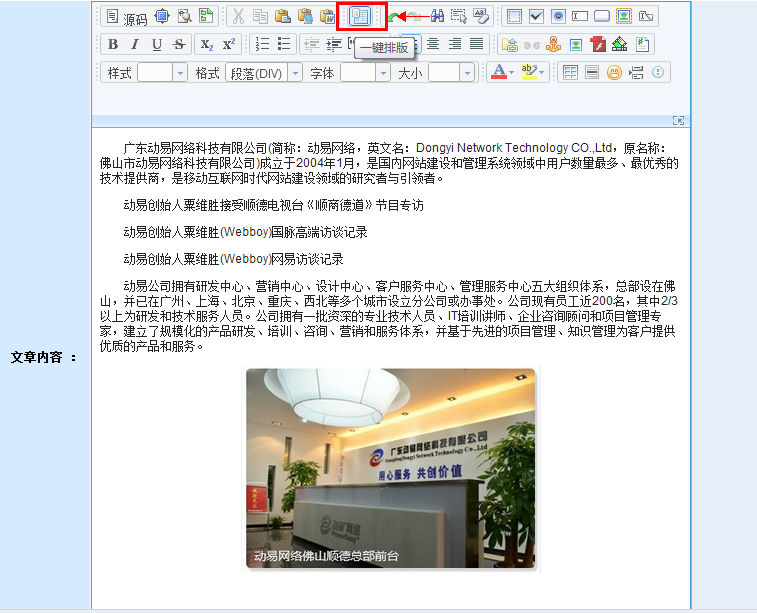 文章内容一键排版功能——动易5.1版新特性