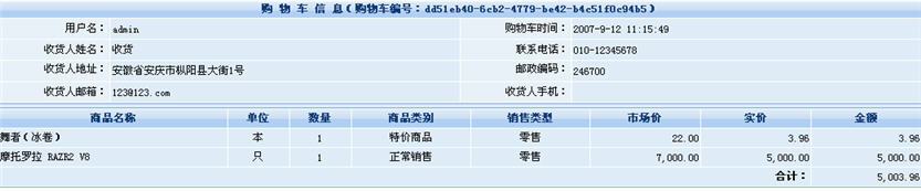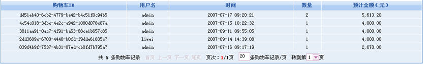 动易eShop 2007后台具备购物车管理功能。注册用户在前台购物车的所有商品记录都会以列表形式汇总到购物车管理里面,管理员在可以点击查看到具体每个购物车的用户详细联系信息、购买时间、商品种类、价格、数量等等。