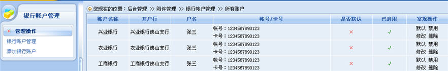 对于商家来说,银行帐户的管理意义还不仅仅是如此,银行帐户的管理还涉及到了商家对不同的银行帐户的汇入汇出资金进行统计的功能。