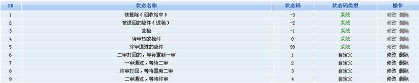 稿件状态码很显然的是用于显示稿件当前的处理状态的:是待审核的稿件,还是已经通过审核的稿件?这样便使得用户可以清楚的了解到所投稿件正处在什么审核状态,对于网站编辑来说,也可以提醒自己是否有未处理的稿件,并让稿件按既定的流程顺序进入下一个审核环节。