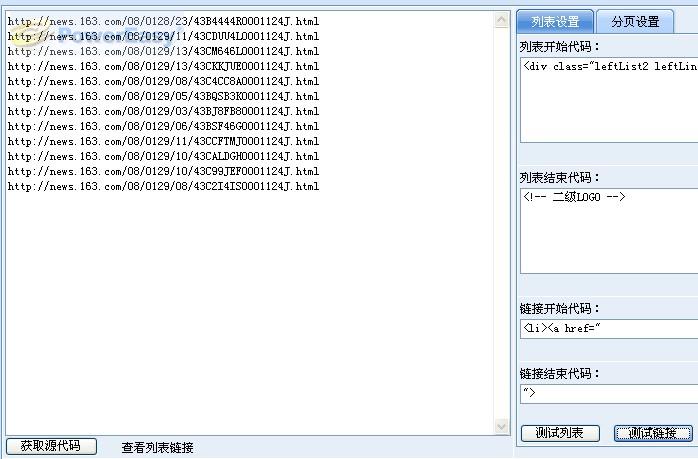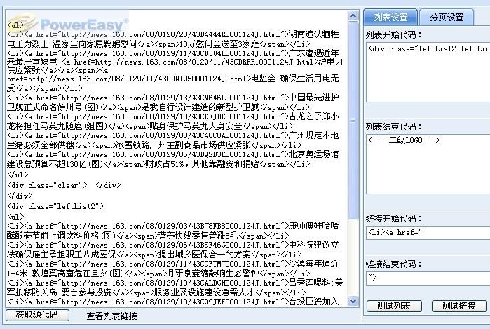这里说的即时显示指的是无刷新即看见采集的效果,所有的采集规则都可以通过AJAX效果进行预览。比如我们采集 的国内新闻列表,当我们设置好列表采集规则后,点击“测试列表”和“测试链接”我们就可以直接在左边预览到采集后的效果(如下图)。