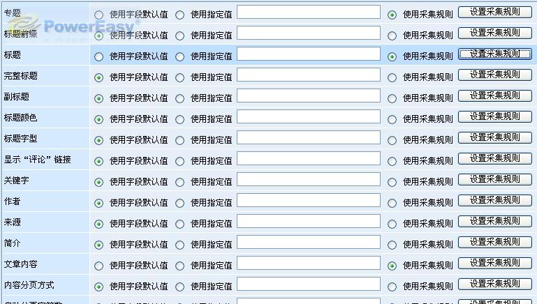 下图是为文章模型中的每个字段设置采集规则的界面,当然这些预览效果都是AJAX无刷新来实现的。