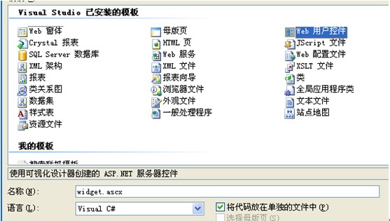 首先,建立一个用户控件命名为“widget.ascx”(这个命名是固定的,不可以自定义):