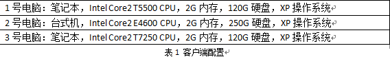 为避免某一台客户端电脑配置太慢会引起误差,采用3台不同的电脑上来测试。三台电脑的配置分别为: